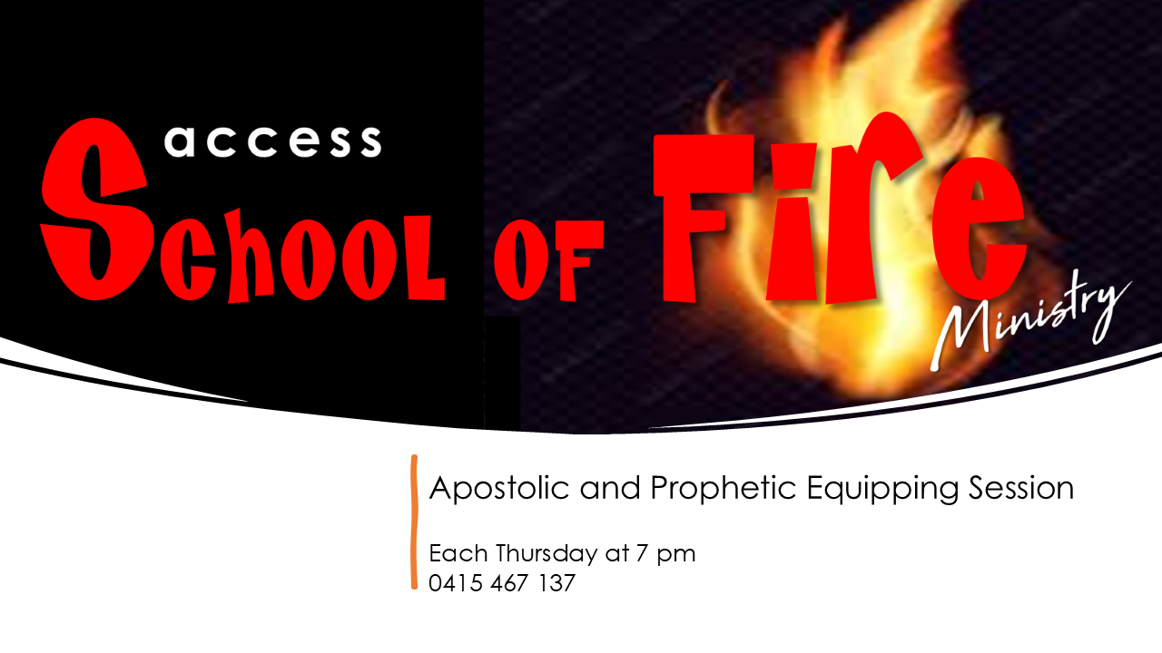 - A weekly Apostolic and Prophetic equipping session, worship, prayer and ministry.